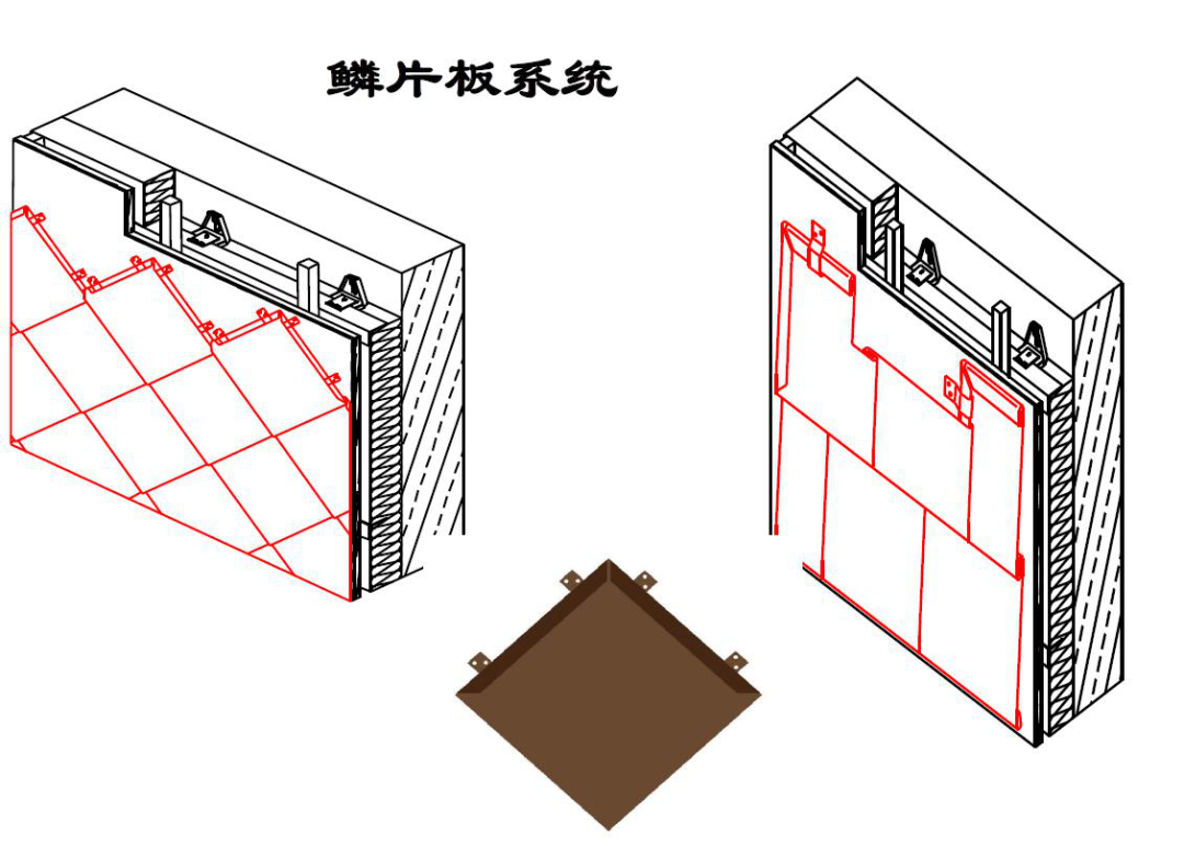 6、安裝施工方便快捷。鋁板在工廠成型,施工現(xiàn)場不需裁切,固定在骨架上即可。